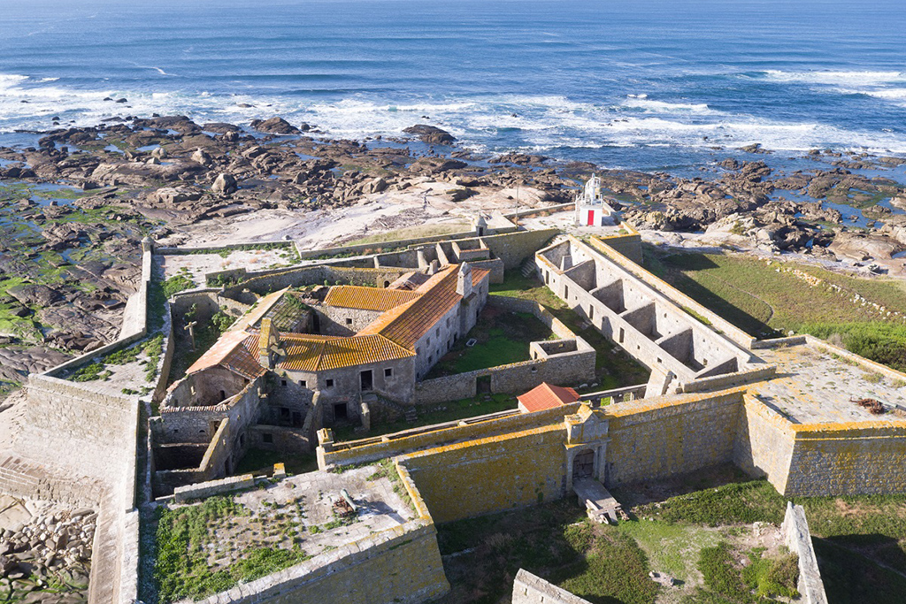 The star-shaped fort is located on an island – Ínsua de Santo Isidro – on the mouth of the River Minho close to the Spanish border and is only accessible by boat. Within it holds a former Franciscan convent which was extended over the centuries.