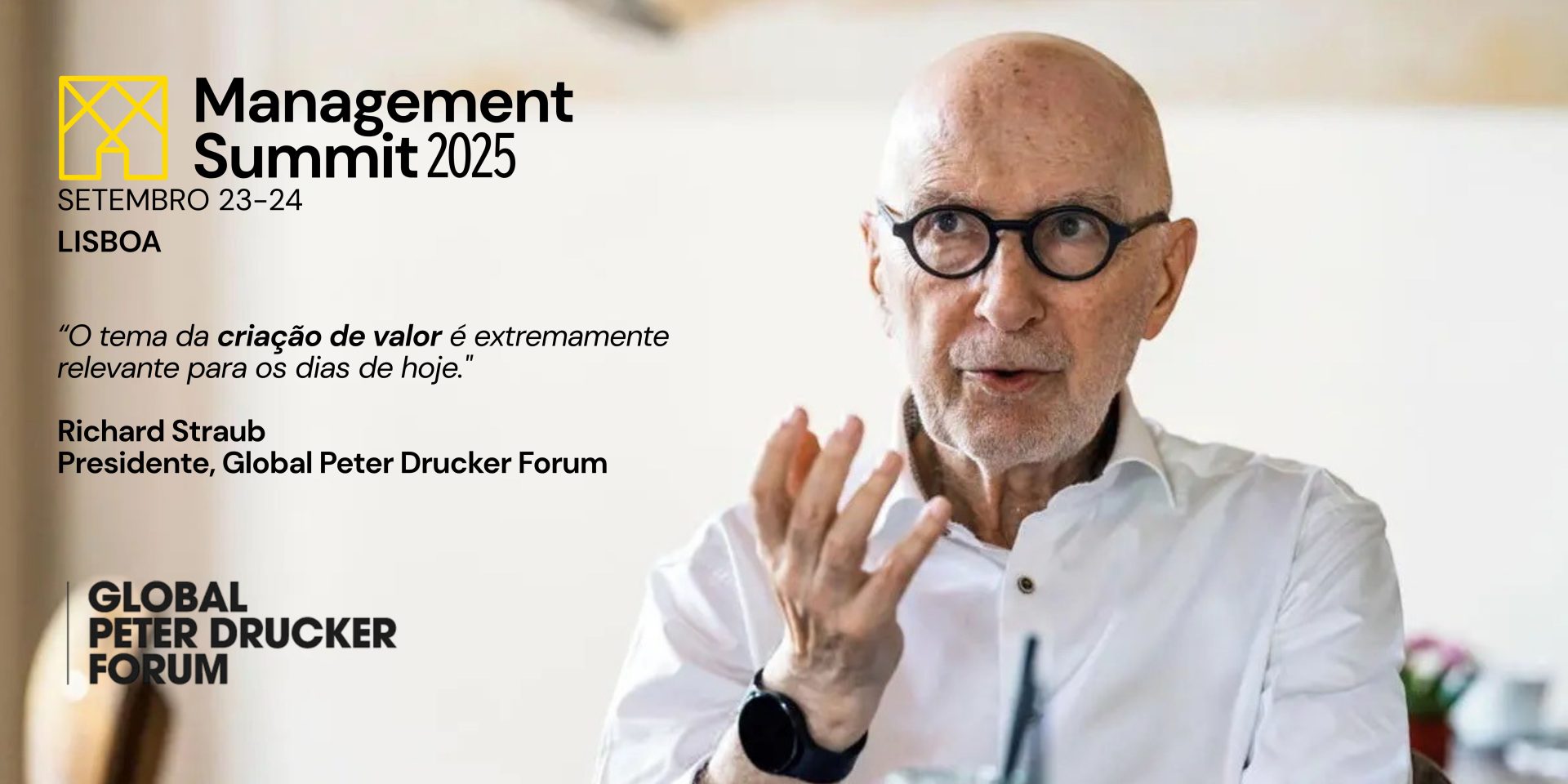 The event will bring together global leaders, Portuguese CEOS, and is organized in partnership with the Global Peter Drucker Forum, a world reference in the Peter Drucker philosophy of management.